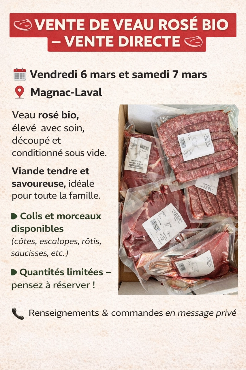 Les ventes de viande se font sur réservation tous les deux mois, garantissant ainsi la fraîcheur et la qualité de chaque produit que vous recevez.